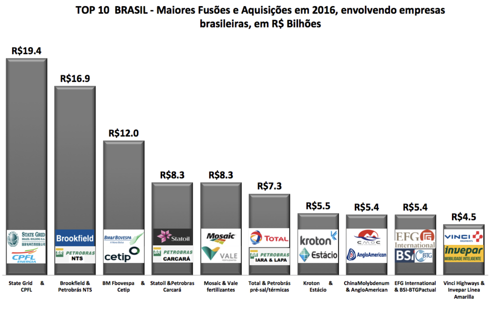 Em 2019, foram realizadas 86 operações com porte acima de R$ 1,0 bilhão, um aumento de 48,3% do número de operações em relação ao ano anterior, e correspondendo a um investimento da ordem de R$ 264 bilhões, representando um crescimento de 31,1%.*